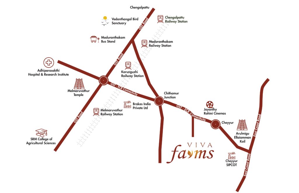 Madurantakam Is Chosen A Growth Corridor, Leveraging its Proximity To Chennai Connectivity Between Gst & Ecr. Gst Maduranthakam & Marakkanam Via Ecr Cheyyur & Marakkanam Easy Access In Distance Of 10 Mins Drive Away.